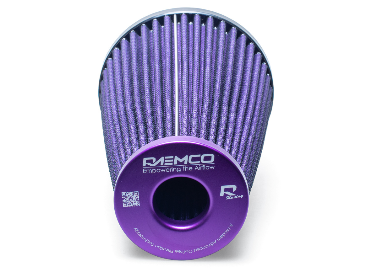 Sportovní filtry Raemco se vyznačují kvalitní konstrukcí kombinující atraktivní hliníkový vrchlík s potiskem a přesné vstupní hrdlo z uretanu, které je navíc tvarováno do tvaru trychtýře se směrováním do sání. Tento tvar zajišťuje nejsnazší proudění vzduchu bez ostrých hran a překážek. Dále je filtr vybaven protisměrným filtračním kónusem, který rovná proudění vzduchu směrem do sání motoru.