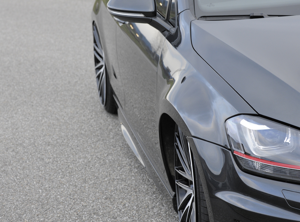 Blatník od německého výrobce Rieger Tuning pro Volkswagen Golf 7 včetně verzí GTD, GTI, GTI Clubsport, R, karoserie 3-dveřová a 5-dveřová, před faceliftem.