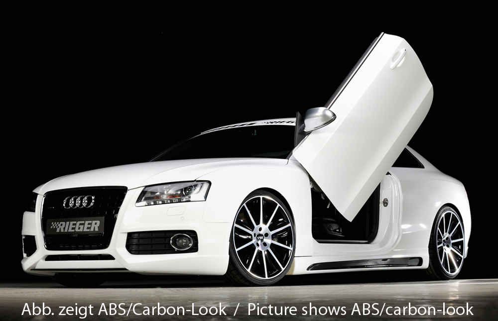Rieger boční práh mont. strana levá pro Audi A5 B8, B81 kabriolet, kupé vč. faceliftu, r.v. 06/07-07/11, 10/11-06/16, plast ABS bez povrchové úpravy, s prolisem a výřezem
