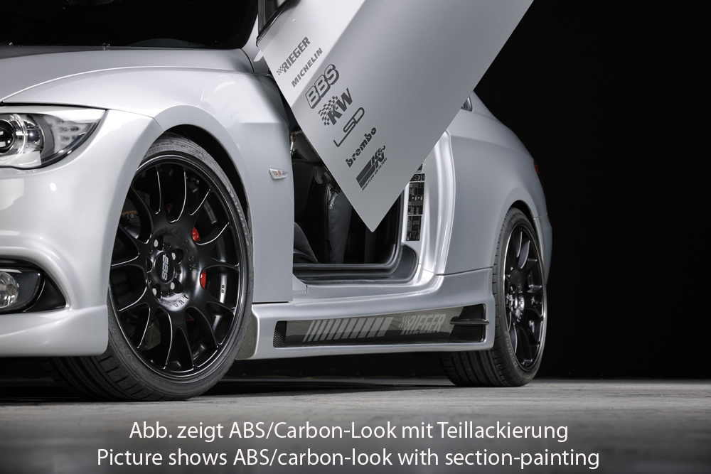 Rieger boční práh mont. strana levá pro BMW řada 3 E92, E93 kabriolet, kupé vč. faceliftu, r.v. 03/07-02/10, 03/10-, 09/06-02/10, plast ABS s povrchovou úpravou Carbon-Look, s prolisem, s prolisem a dvěma výřezy