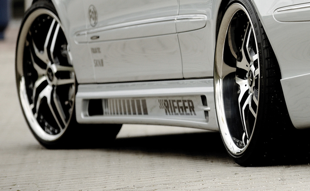 Rieger boční práh mont. strana levá pro Mercedes CLK W209 kabriolet, kupé vč. faceliftu, r.v. 00/02-06/04, 07/04-, plast ABS bez povrchové úpravy, s prolisem, s prolisem a dvěma výřezy