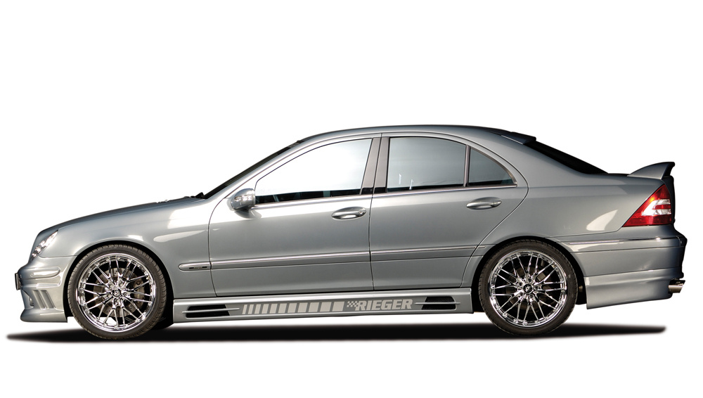 Rieger boční práh mont. strana levá pro Mercedes třída C W203 sedan, sportcoupe, t-model, r.v. 05/00-, plast ABS bez povrchové úpravy, s prolisem, s prolisem a dvěma výřezy