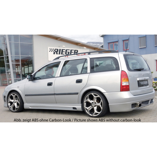 Rieger boční práh mont. strana levá pro Opel Astra G 5-dvéř., caravan, fastback, hatchback, notchback, plast ABS s povrchovou úpravou Carbon-Look, s prolisem a výřezem