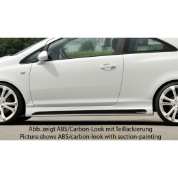 Rieger boční práh mont. strana levá pro Opel Corsa D 3-dvéř. vč. faceliftu, r.v. 01/11-, 07/06-12/10, plast ABS bez povrchové úpravy, s prolisem a výřezem