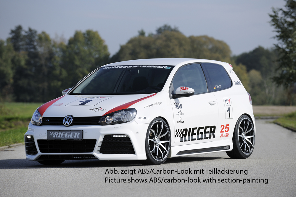Rieger boční práh mont. strana levá pro Volkswagen Golf 6 vč. GTD, GTI 3-dvéř., 5-dvéř., kabriolet, variant, plast ABS bez povrchové úpravy, s prolisem a výřezem