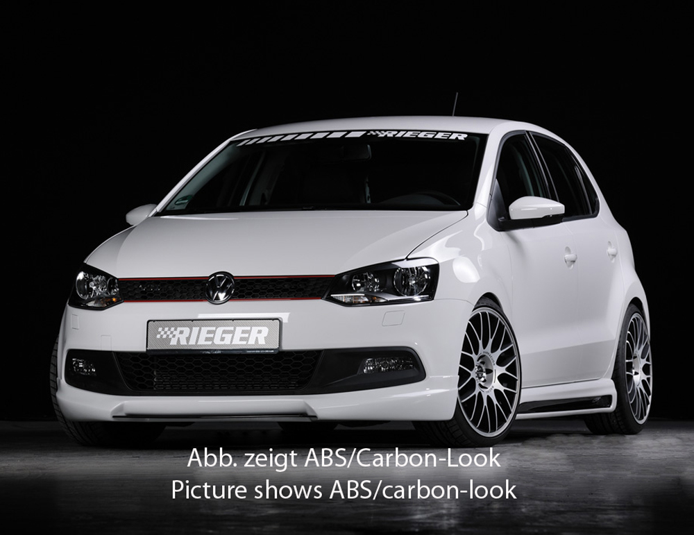Rieger boční práh mont. strana levá pro Volkswagen Polo 6 6R, GTI 3-dvéř., 5-dvéř. vč. faceliftu, r.v. 02/14-, 04/09-01/14, 05/10-, 05/10-01/14, plast ABS bez povrchové úpravy, s prolisem a výřezem