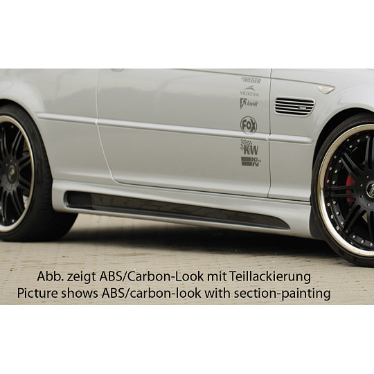 Rieger boční práh mont. strana pravá pro BMW řada 3 E46, E46 M3 compact, kabriolet, kupé, sedan vč. faceliftu, r.v. 02/02-, 02/98-12/01, 06/00-, plast ABS s povrchovou úpravou Carbon-Look, s prolisem a výřezem