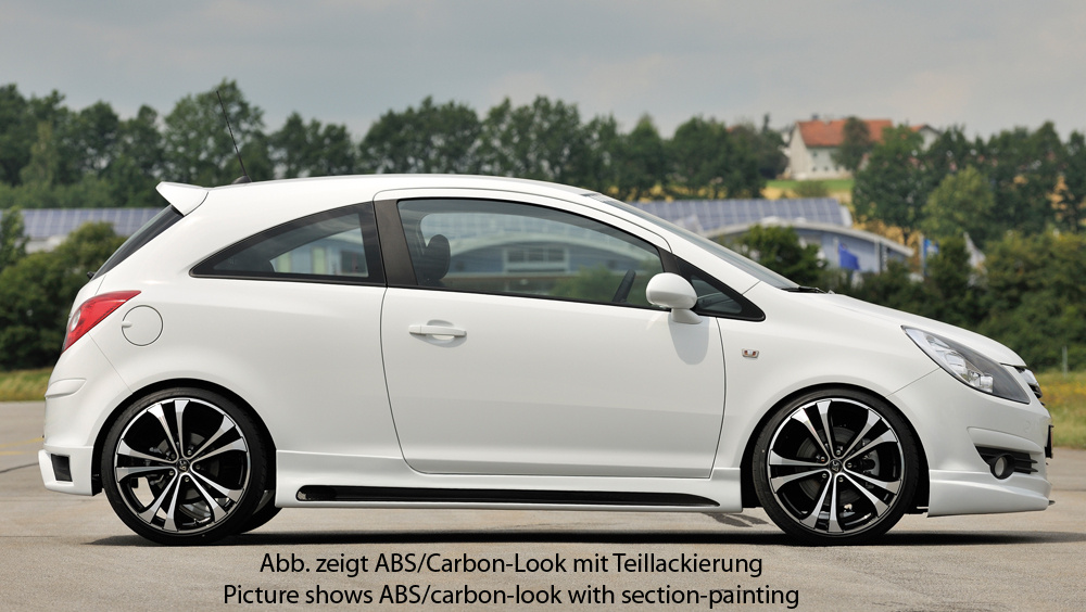 Rieger boční práh mont. strana pravá pro Opel Corsa D 3-dvéř. vč. faceliftu, r.v. 01/11-, 07/06-12/10, plast ABS bez povrchové úpravy, s prolisem a výřezem
