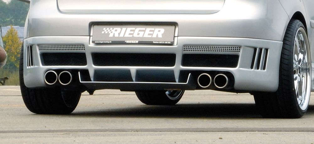 Difuzor pod zadní nárazník od německého výrobce Rieger Tuning je určen pro vozy Volkswagen Golf 5 (Typ 1K, 3-dvéř. a 5-dvéř.). Vyroben je z kvalitního plastu ABS bez povrchové úpravy, který vyniká vysokou pevností, odolností vůči povětrnostním vlivům a možností lakování do barvy vozu. Tento díl je určen pro montáž pouze pod již namontovaný díl Rieger Tuning (např. spoiler nebo nárazník).