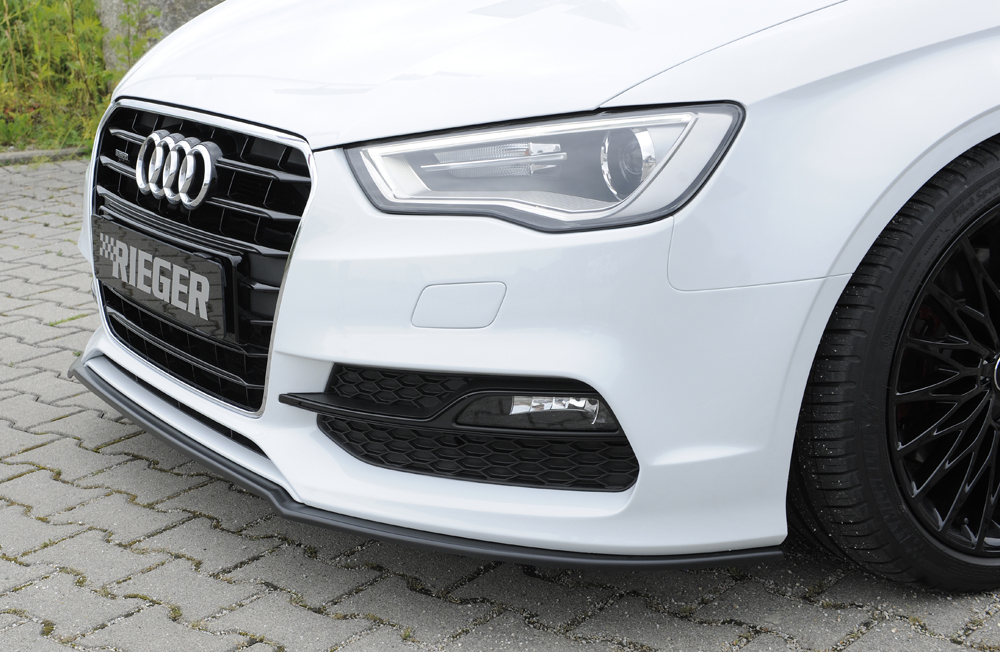 Rieger lipa pod přední nárazník pro Audi A3 8V 3-dvéř. (convertible 8V7), 5-dvéř. (sedan 8VS) před faceliftem, 07/12-08/16, plast ABS bez povrchové úpravy
