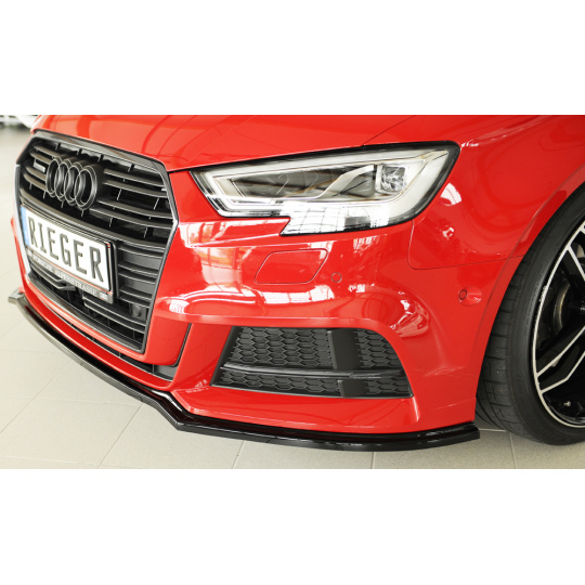Rieger lipa pod přední nárazník pro Audi A3 S3 8V 3-dvéř. (convertible 8V7), 5-dvéř. (sedan 8VS) po faceliftu, 09/16-, plast ABS lakovaný do černé lesklé barvy