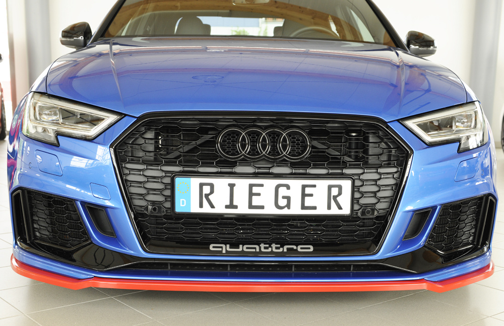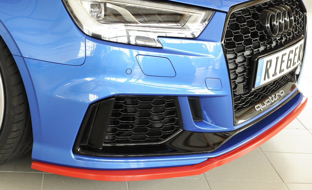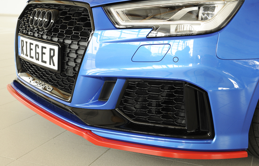 Rieger lipa pod přední nárazník pro Audi RS3 8V 5-dvéř. (sedan 8VS / 8VM), 5-dvéř. (sportback 8VA / 8VF) po faceliftu, 02/17-, plast ABS bez povrchové úpravy