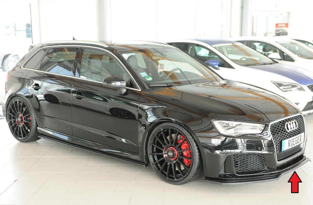 Rieger lipa pod přední nárazník pro Audi RS3 8V 5-dvéř. (sportback 8VA / 8VF), 04/15-01/17, plast ABS lakovaný do černé lesklé barvy