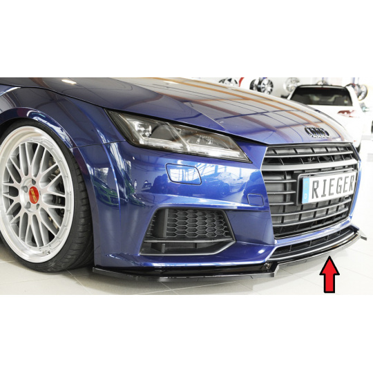 Rieger lipa pod přední nárazník pro Audi TTS 8J-FV, 8S kupé, roadster před faceliftem, 07/14-08/18, plast ABS lakovaný do černé lesklé barvy