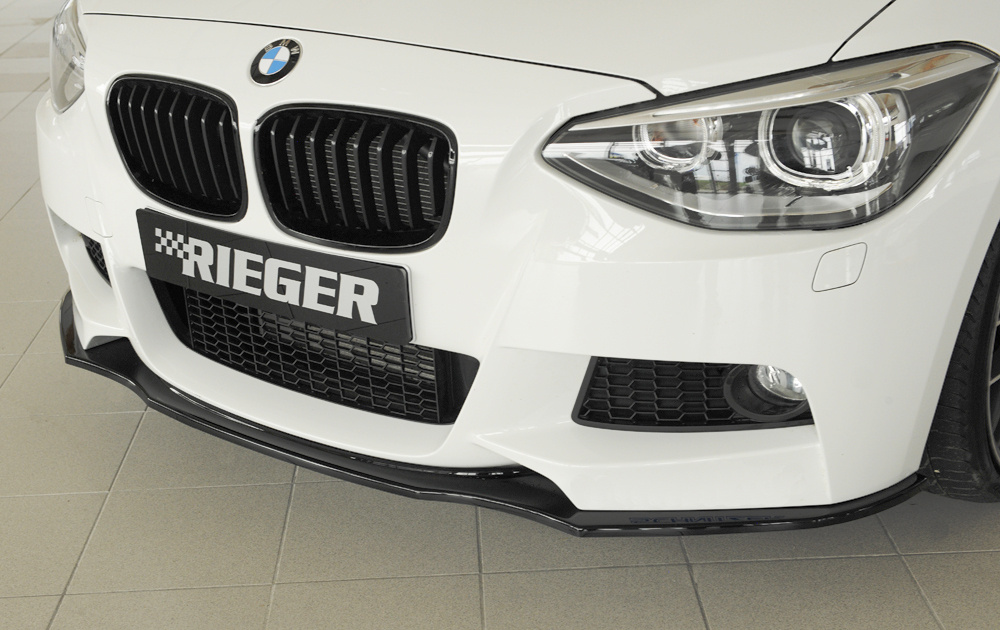 Rieger lipa pod přední nárazník pro BMW řada 1 F20, F21 sedan / 2-dvéř., sedan / 4-dvéř. před faceliftem, 09/11-03/2015, 09/12-03/2015, plast ABS lakovaný do černé lesklé barvy