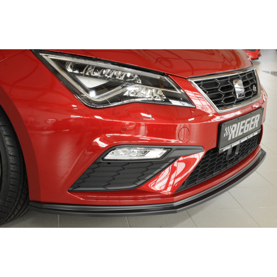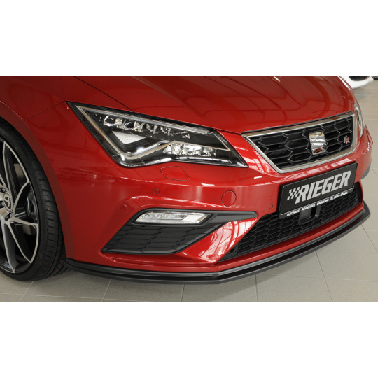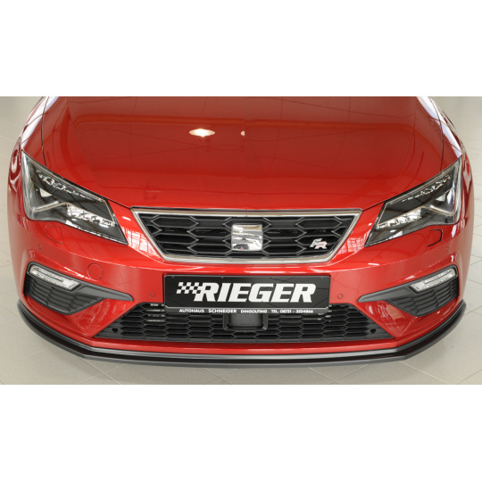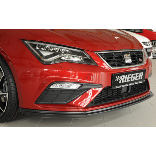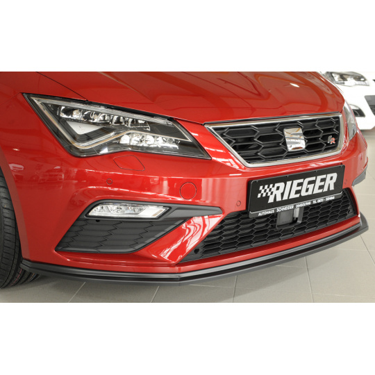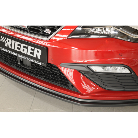 Sportovní lipa od Rieger Tuning pro Seat Leon FR (typ 5F, po faceliftu, 01/17–). Vyrobena z plastu ABS bez povrchové úpravy a určena pro montáž pod originální FR/Cupra nárazník.