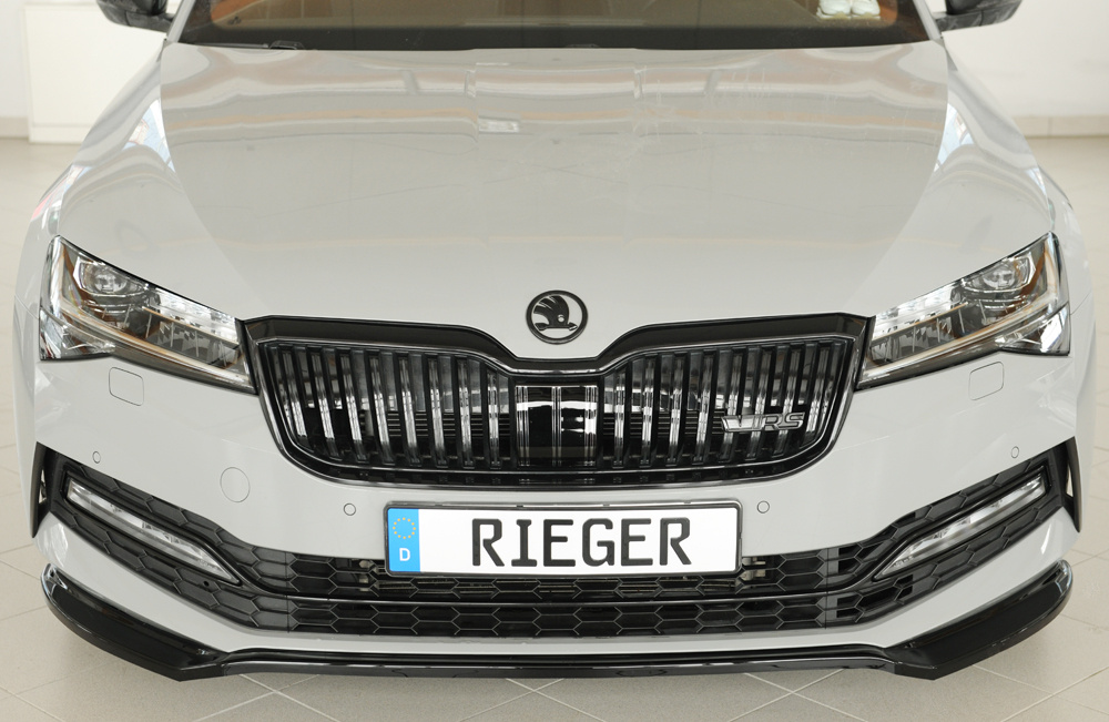 Rieger lipa pod přední nárazník pro Škoda Superb III 3T, 3V combi, 08/19-, plast ABS lakovaný do černé lesklé barvy