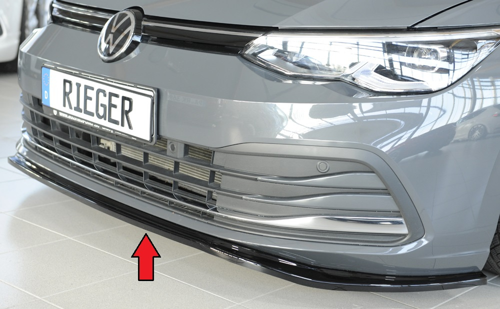 Rieger lipa pod přední nárazník pro Volkswagen Golf 8 3-dvéř., 12/19-, plast ABS lakovaný do černé lesklé barvy