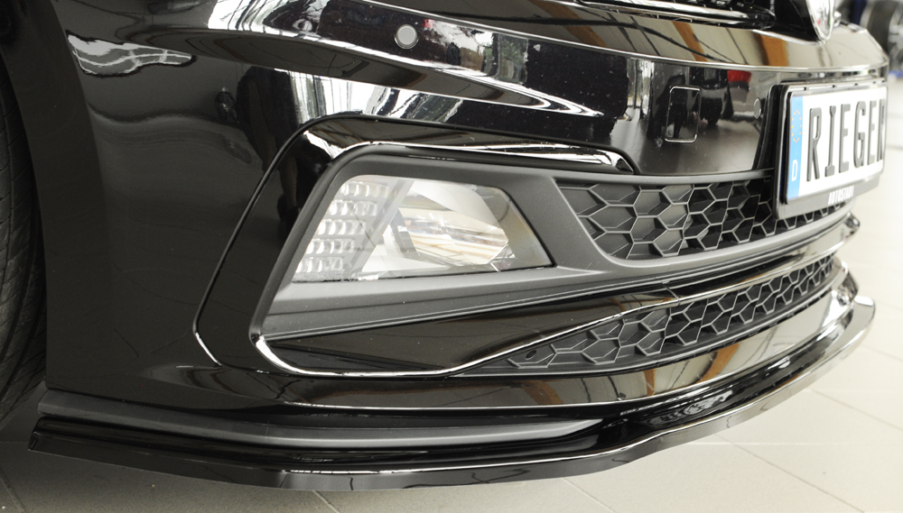 Rieger lipa pod přední nárazník pro Volkswagen Polo AW 5-dvéř., 06/17-, plast ABS lakovaný do černé lesklé barvy