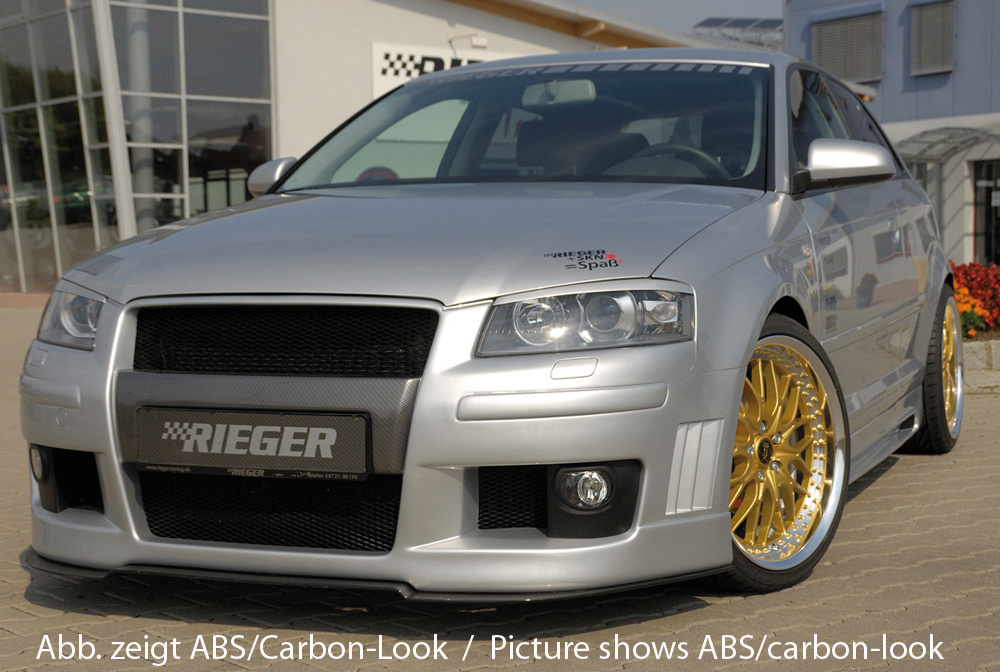 Sportovní lipa Rieger Tuning určená pro Audi A3 8P (3-dvéř., před faceliftem – do 05/2005). Vyrobena z kvalitního plastu ABS bez povrchové úpravy, vhodného pro lakování. Kompatibilní s předními nárazníky Rieger s obj. kódy Y 00056702, Y 00056712, Y 00056720, Y 00056731, Y 00056733.