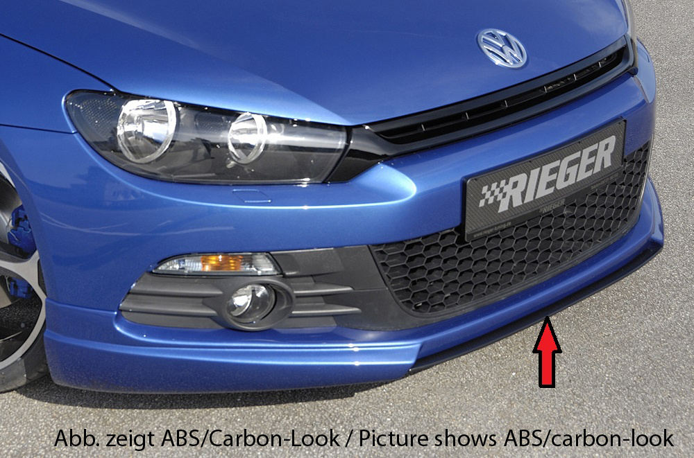 Rieger lipa pod přední nárazník Rieger pro Volkswagen Scirocco 3 13 2-dvéř. před faceliftem, 08/08-04/14, plast ABS bez povrchové úpravy, pod přední spoiler Rieger obj. kód K 00014100