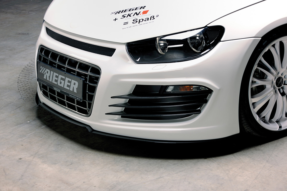 Lipa od německého výrobce Rieger Tuning určená pro Volkswagen Scirocco 3 (Typ 13, 2d, před faceliftem 08/2008–04/2014). Vyrobena z plastu ABS s povrchovou úpravou Carbon-Look. Montáž pod přední nárazník Rieger – obj. kódy K 00014102, K 00014103.