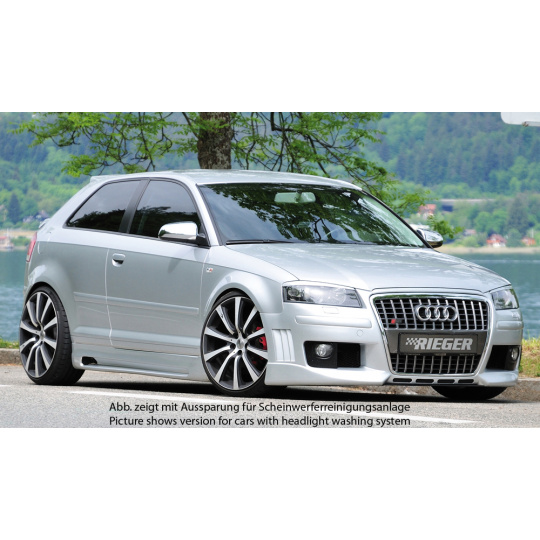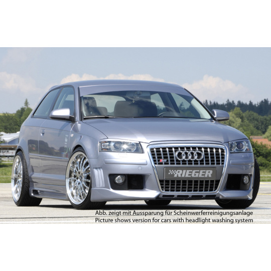 Přední nárazník od renomované značky Rieger Tuning určený pro vozy Audi A3 (Typ 8P) ve verzi 3dveřová, modely před faceliftem, do 05/2005. Vyroben z kvalitního plastu ABS bez povrchové úpravy, který je připraven k lakování do barvy vozu. Díky preciznímu zpracování zajišťuje přesné spasování a dodává vozu sportovní a výrazný vzhled.