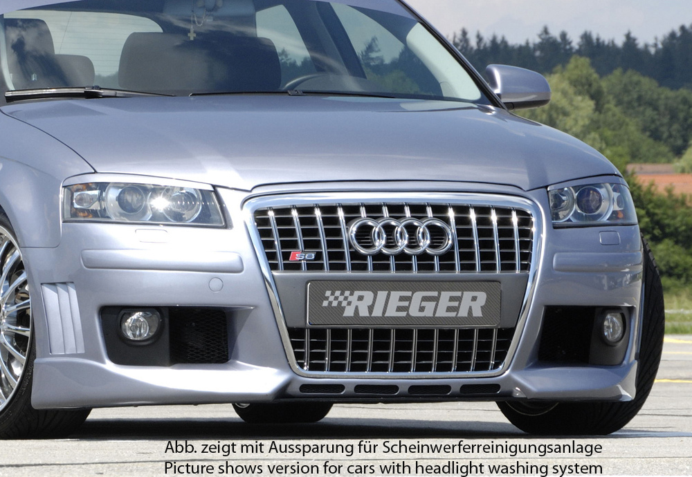 Přední nárazník od renomované značky Rieger Tuning určený pro vozy Audi A3 (Typ 8P) ve verzi 3dveřová, modely před faceliftem, do 05/2005. Vyroben z kvalitního plastu ABS bez povrchové úpravy, který je připraven k lakování do barvy vozu. Díky preciznímu zpracování zajišťuje přesné spasování a dodává vozu sportovní a výrazný vzhled.
