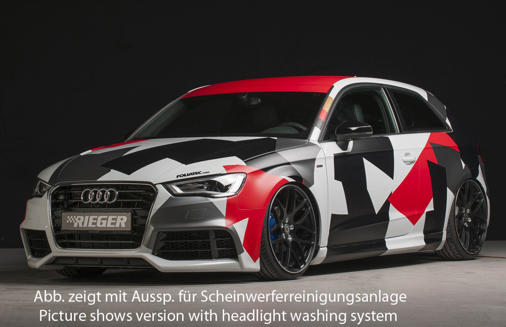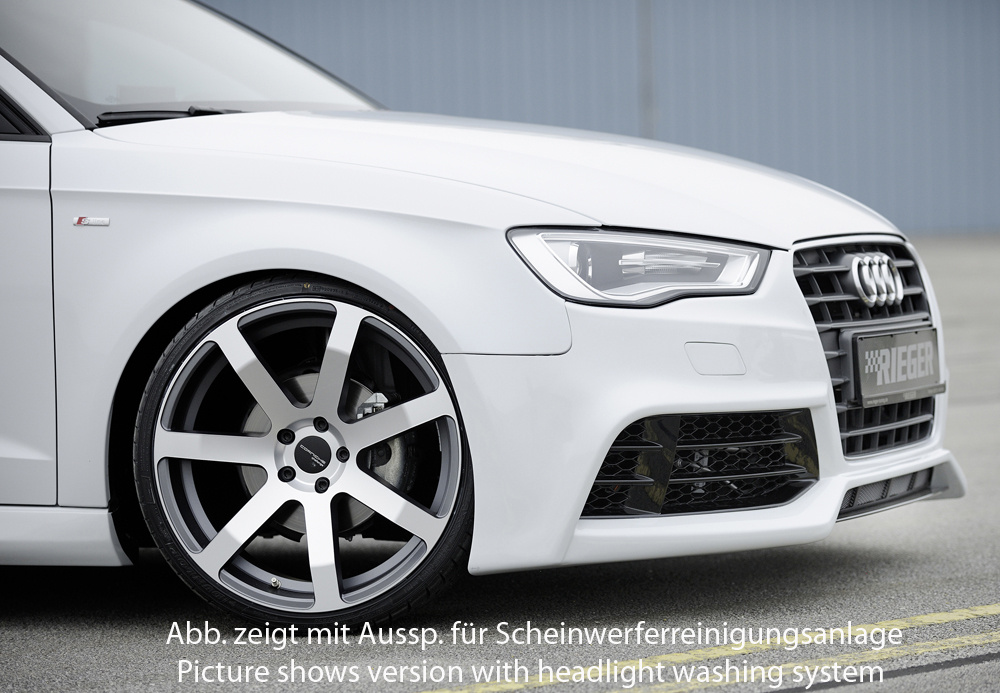Rieger přední nárazník pro Audi A3 8V 3-dvéř. (hatchback 8V1), 5-dvéř. (sportback 8VA) před faceliftem, plast ABS bez povrchové úpravy, pro vozy bez ostřikovačů světlometů a bez PDC