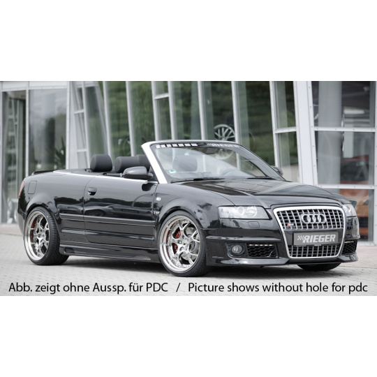 Rieger přední nárazník pro Audi A4 8H kabriolet před faceliftem, plast ABS bez povrchové úpravy, s žebrováním, s držáky originálních mlhových světel, pro vozy s parkovacím asistentem (PDC)