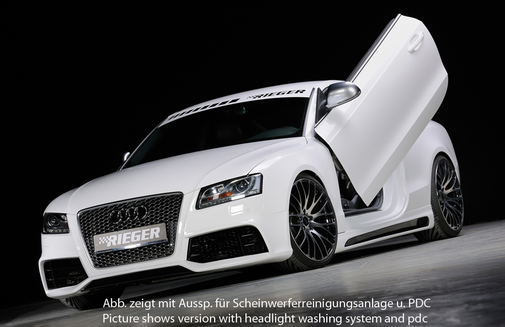 Rieger přední nárazník pro Audi A5 S5 B8, B81 kabriolet, kupé, Sportback před faceliftem, plast ABS bez povrchové úpravy, pro vozy bez ostřikovačů světlometů a parkovacího asistenta (PDC)