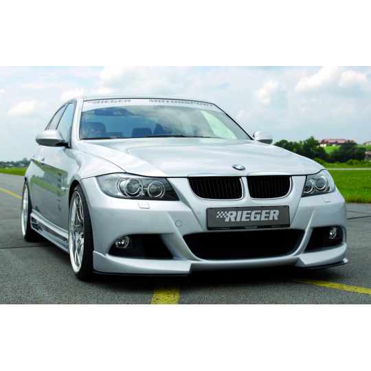 Přední nárazník značky Rieger Tuning, určený pro vozy BMW řady 3 (Typ E90, E91) v provedení sedan a touring vyráběné před faceliftem (03/2005–08/2008). Díky preciznímu zpracování z vysoce kvalitního ABS plastu bez povrchové úpravy je díl odolný, pružný a připravený k lakování. Nárazník ladně navazuje na karoserii a zvýrazňuje sportovní charakter vozu.