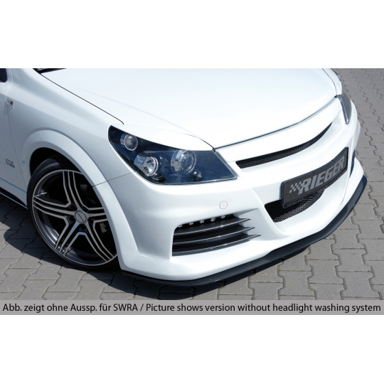 Rieger přední nárazník pro Opel Astra H vč. GTC, Twin-Top 3-dvéř., 5-dvéř., caravan, hatchback, kabriolet, plast ABS bez povrchové úpravy, s malým výřezem pro ostřikovače předních světlometů, s výřezem na světla pro denní svícení