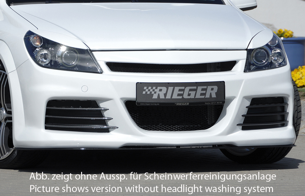 Rieger přední nárazník pro Opel Astra H vč. GTC, Twin-Top 3-dvéř., 5-dvéř., caravan, hatchback, kabriolet, plast ABS bez povrchové úpravy, s velkým výřezem pro ostřikovače předních světlometů