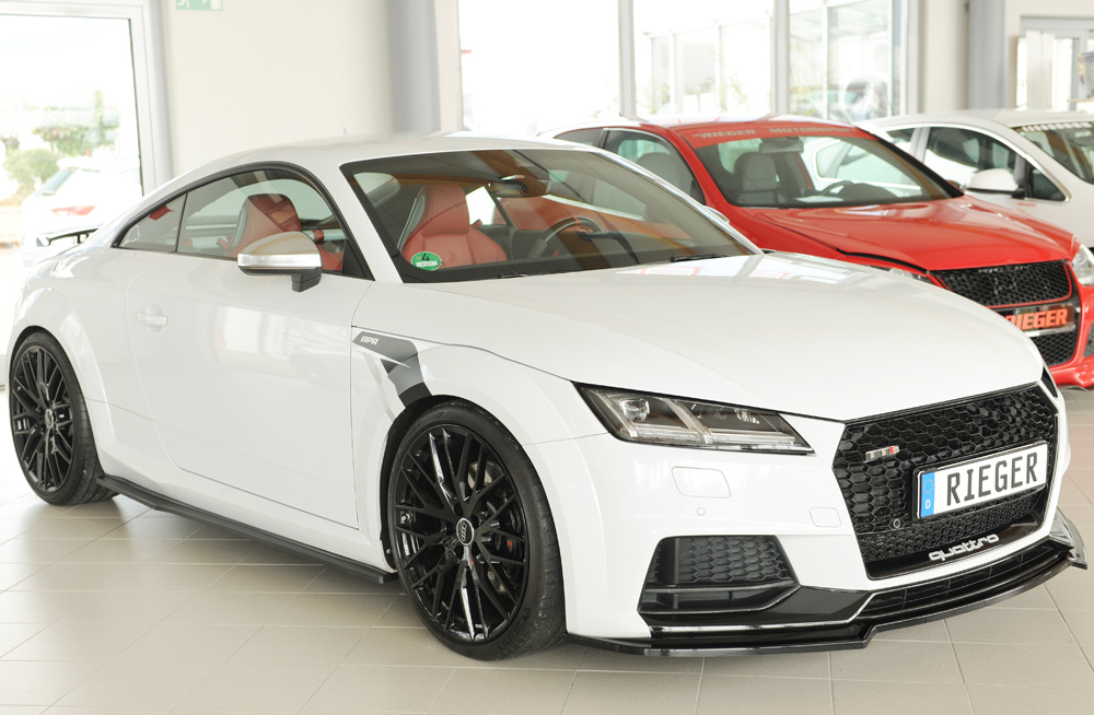 Spoiler pod boční práh od výrobce Rieger Tuning pro vůz Audi TT RS (Typ 8J, 8J1-FV, 8S) v provedení roadster. Určeno pro modely vyráběné 05/2016–08/2018. Vyroben z plastu ABS bez povrchové úpravy – připraveno k lakování. Produkt disponuje certifikátem TÜV/ABE a zaručuje precizní zpracování.