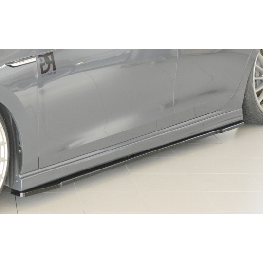 Boční práh od Rieger Tuning pro vůz Volkswagen Golf 8 (Typ 3-dveř.). Určeno pro modely vyráběné od 12/2019. Vyroben z plastu ABS lakovaného do černé lesklé barvy.