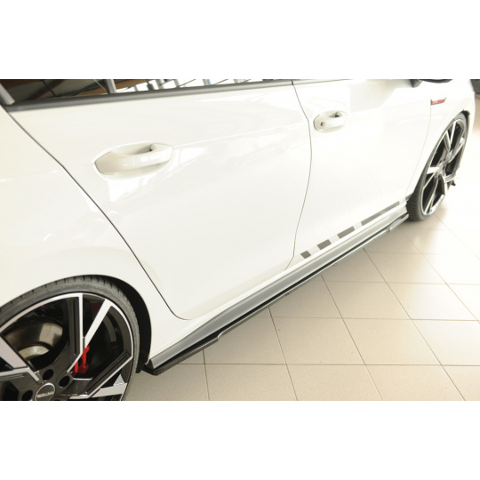Boční práh pro Volkswagen Golf 8 GTI Clubsport (5-dveř.). Vyroben z plastu ABS s černým lesklým lakem. Montáž na levou i pravou stranu.