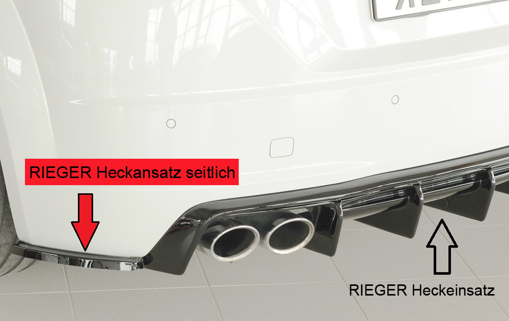 Rieger spoiler pod zadní nárazník na levé straně pro Audi TTS 8J-FV, 8S roadster r.v. 07/14-08/18, plast ABS lakovaný do černé lesklé barvy