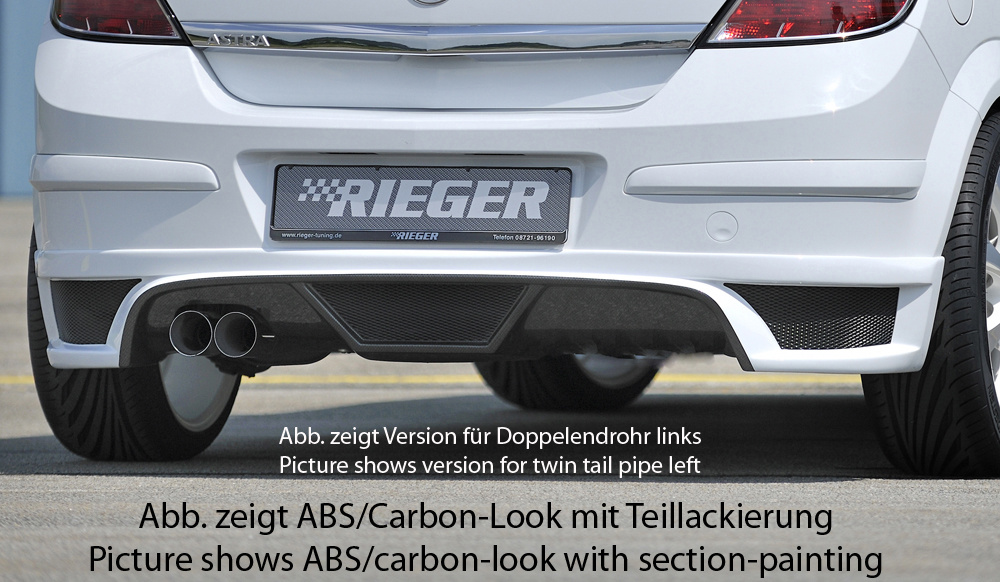Rieger spoiler pod zadní nárazník pro Opel Astra H 5-dvéř., hatchback, notchback r.v. 03/04-, plast ABS s povrchovou úpravou Carbon-Look, pro koncovku vlevo