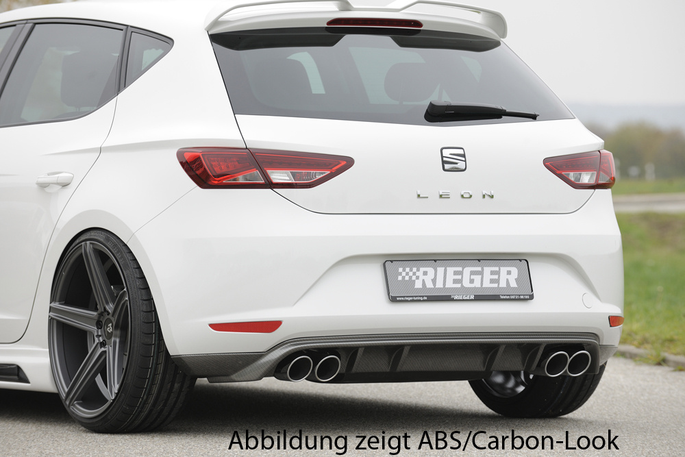 Rieger spoiler pod zadní nárazník pro Seat Leon 5F 3-dvéř. (sc), 5-dvéř. před faceliftem r.v. 10/12-12/16, plast ABS lakovaný do černé lesklé barvy, pro dvojité koncovky na obou stranách