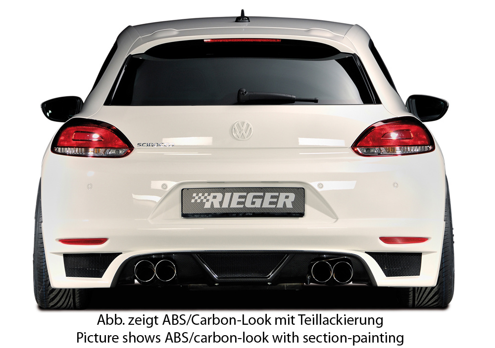 Rieger spoiler pod zadní nárazník pro Volkswagen Scirocco 3 13 2-dvéř. před faceliftem r.v. 08/08-04/14, plast ABS bez povrchové úpravy, pro dvojité koncovky na obou stranách