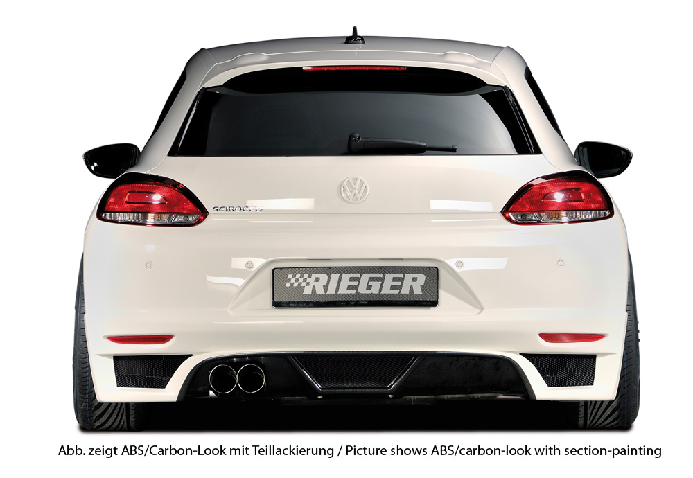Rieger spoiler pod zadní nárazník pro Volkswagen Scirocco 3 13 2-dvéř. před faceliftem r.v. 08/08-04/14, plast ABS bez povrchové úpravy, pro dvojitou koncovku vlevo