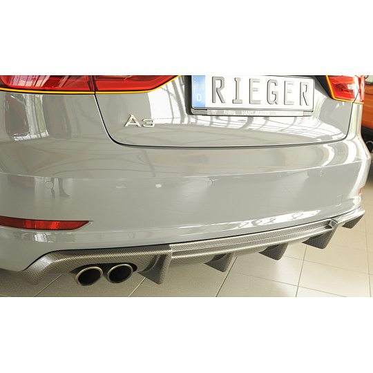 Rieger vložka zadního nárazníku pro Audi A3 8V 3-dvéř. (convertible 8V7), 5-dvéř. (sedan 8VS) před faceliftem, plast ABS s povrchovou úpravou Carbon-Look, pro dvojitou koncovku vlevo