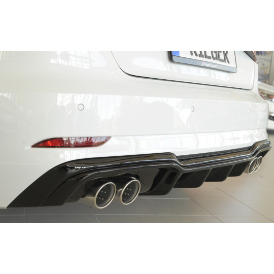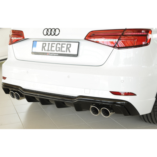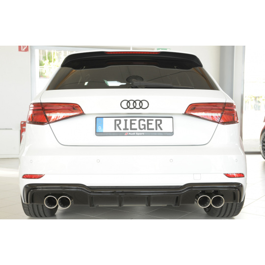 Rieger vložka zadního nárazníku pro Audi A3 8V 3-dvéř. (hatchback 8V1), 5-dvéř. (sportback 8VA) po faceliftu, plast ABS lakovaný do černé lesklé barvy, pro dvojité koncovky na obou stranách 4x90 mm