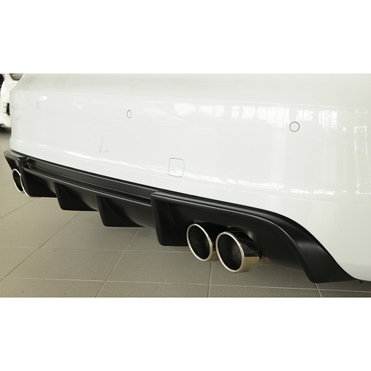 Rieger vložka zadního nárazníku pro Audi A3 8V 3-dvéř. (hatchback 8V1), 5-dvéř. (sportback 8VA) před faceliftem, plast ABS bez povrchové úpravy, S-Line, pro dvojité koncovky na obou stranách 4x90 mm