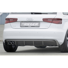 Vložka zadního nárazníku Rieger Tuning určená pro Audi A3 Typ 8V před faceliftem, karoserie 3-dv. hatchback (8V1) a 5-dv. Sportback (8VA), roky 07/12–08/16. Vyrobena z ABS plastu s povrchovou úpravou Carbon-Look. Balení obsahuje montážní materiál.