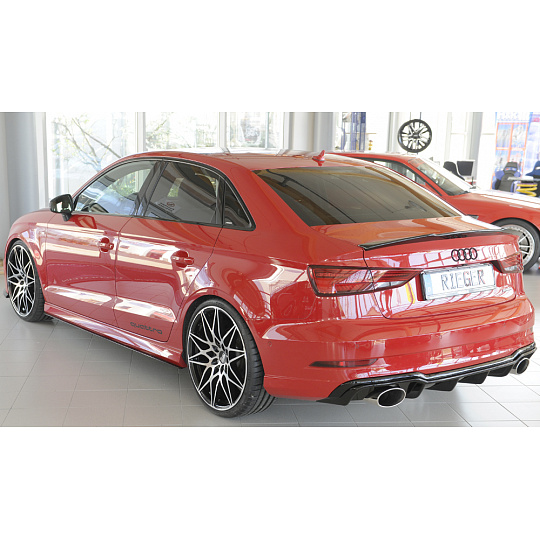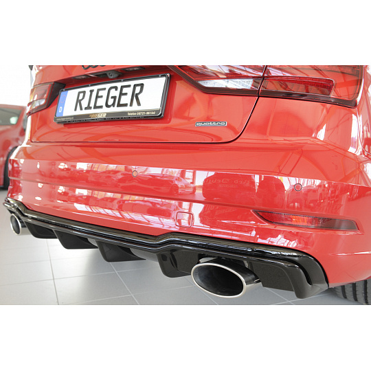 Rieger vložka zadního nárazníku pro Audi A3 S3 8V 3-dvéř. (convertible 8V7), 5-dvéř. (sedan 8VS) po faceliftu, plast ABS lakovaný do černé lesklé barvy, pro sportovní koncovky na obou stranách 152x95 mm
