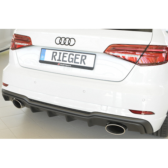 Rieger vložka zadního nárazníku pro Audi A3 S3 8V 3-dvéř. (hatchback 8V1), 5-dvéř. (sportback 8VA) po faceliftu, plast ABS bez povrchové úpravy, pro sportovní koncovky na obou stranách 152x95 mm