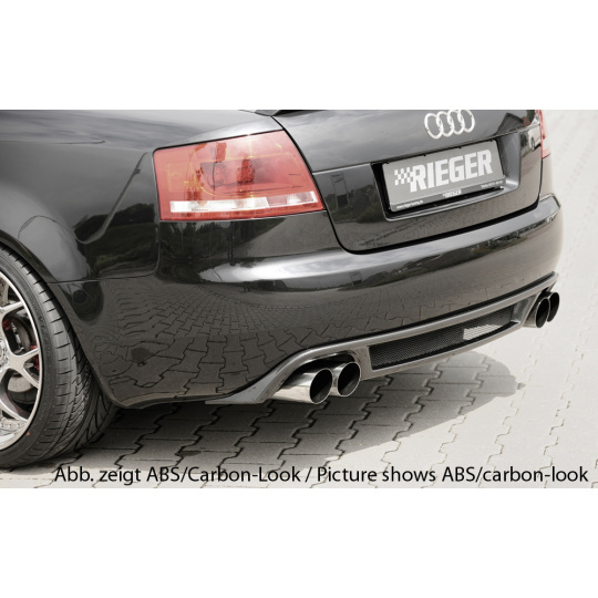 Vložka zadního nárazníku Rieger Tuning určená pro Audi A4 Typ 8H, karoserie Kabriolet, roky od 04/02. Vyrobena z ABS plastu bez povrchové úpravy. Balení obsahuje montážní materiál.