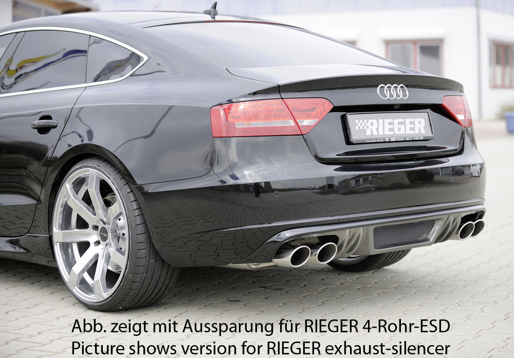 Rieger vložka zadního nárazníku pro Audi A5 B8, B81 Sportback před faceliftem, plast ABS s povrchovou úpravou Carbon-Look, mimo S-Line, pro orig. koncovky na obou stranách